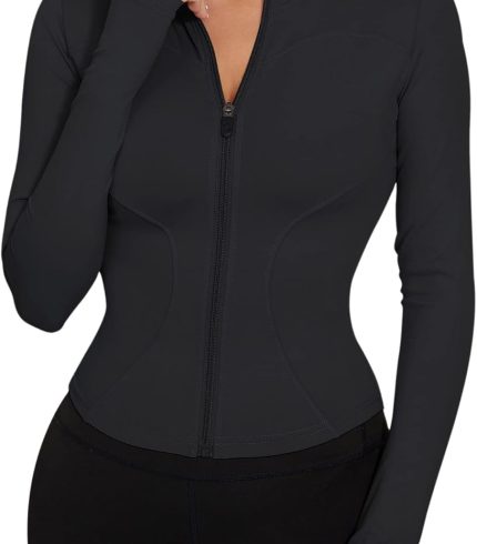 Women’s Workout Jacket Lightweight Zip Up Yoga Jacket Cropped Athletic Slim Fit Tops