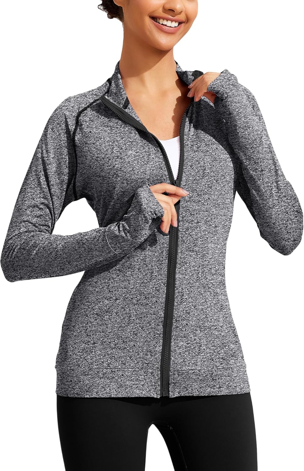 Lightweight Workout Jackets Womens Full Zip Slim Fit Athletic Running Jacket with Thumb Holes