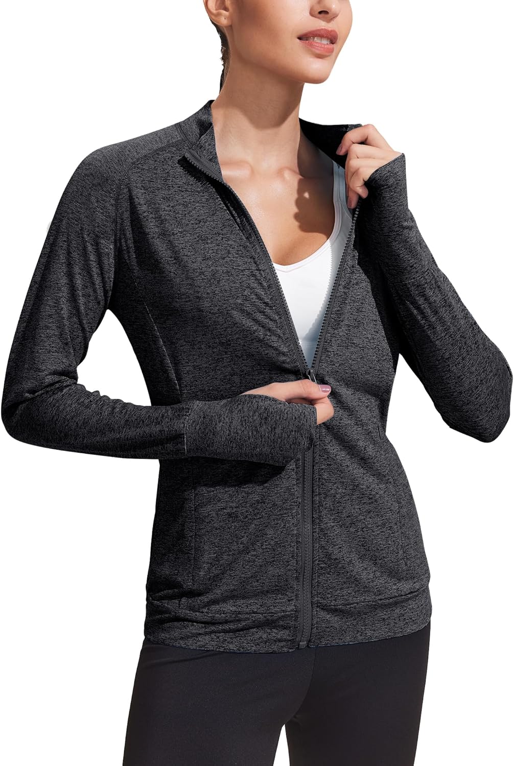 Lightweight Workout Jackets Womens Full Zip Slim Fit Athletic Running Jacket with Thumb Holes