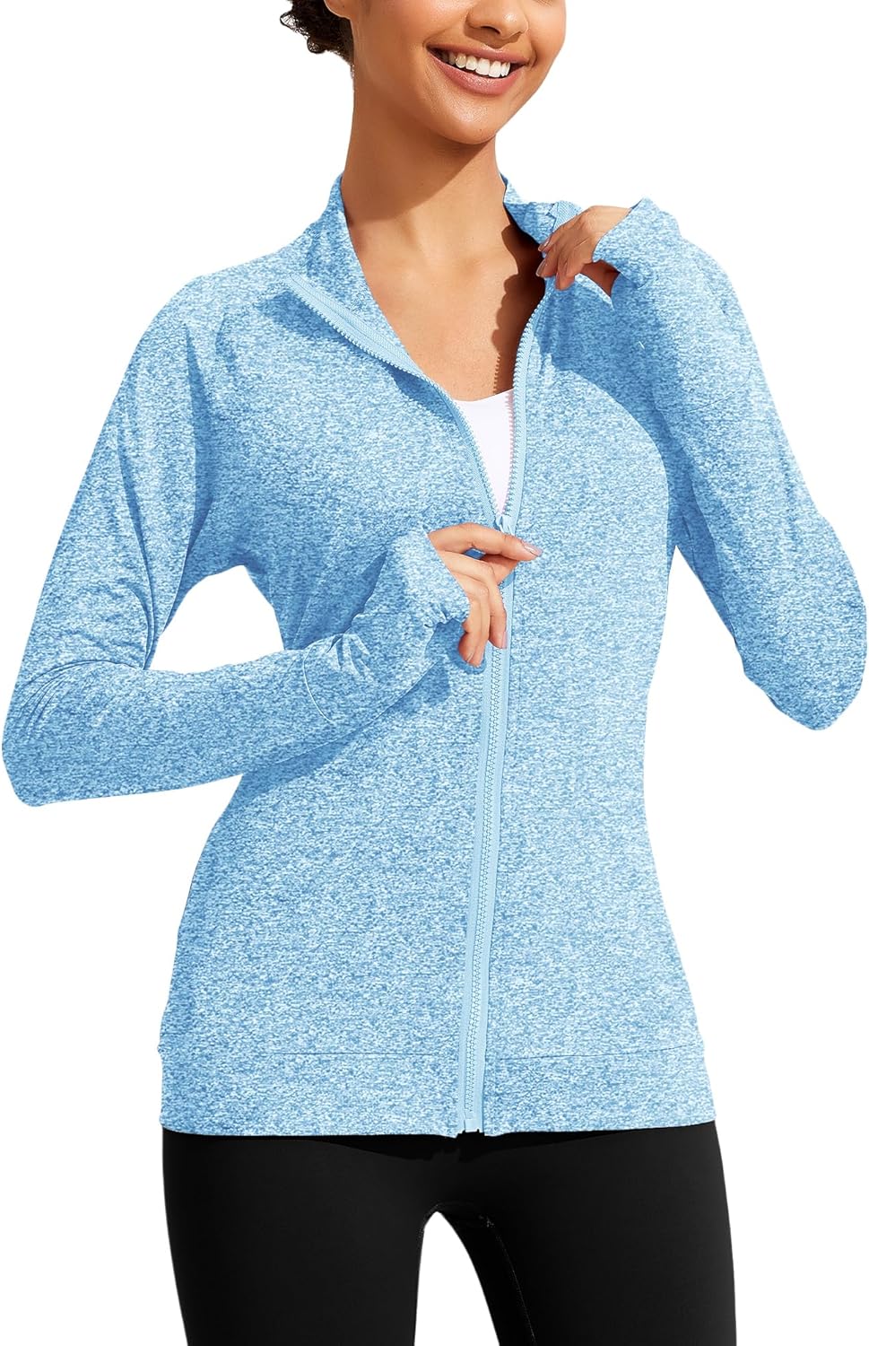 Lightweight Workout Jackets Womens Full Zip Slim Fit Athletic Running Jacket with Thumb Holes