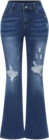 Women’s Stretchy Mid Rise Flare Jeans Distressed Denim Bell Bottom Pants