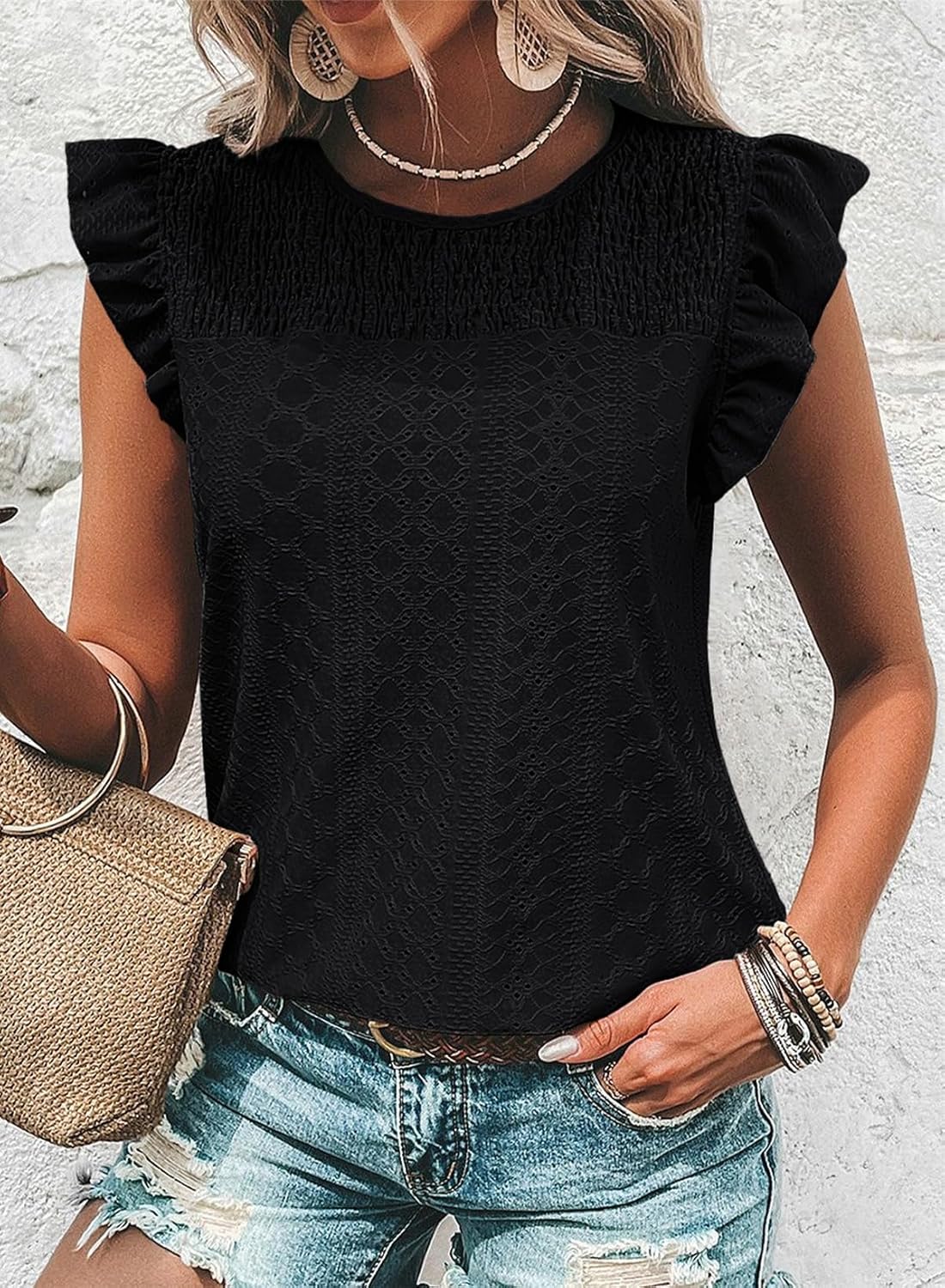 - Features: Crewneck t-shirts with ruffle sleeves, short sleeve tops, solid color, cute and casual shirts for women, trendy and fashion summer tops for women, ladies tops and blouses, add beauty to your wardrobe.