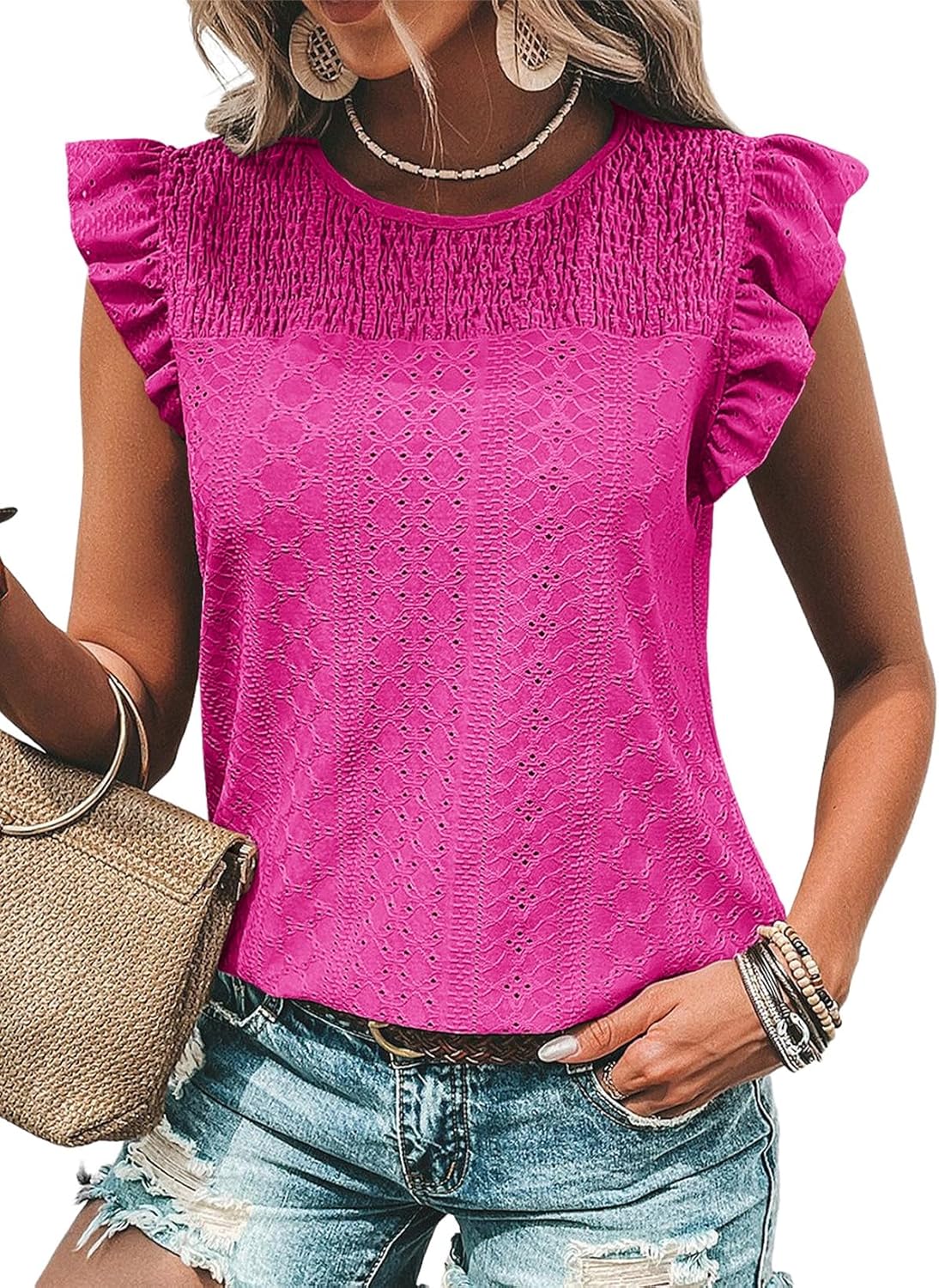 - Features: Crewneck t-shirts with ruffle sleeves, short sleeve tops, solid color, cute and casual shirts for women, trendy and fashion summer tops for women, ladies tops and blouses, add beauty to your wardrobe.
