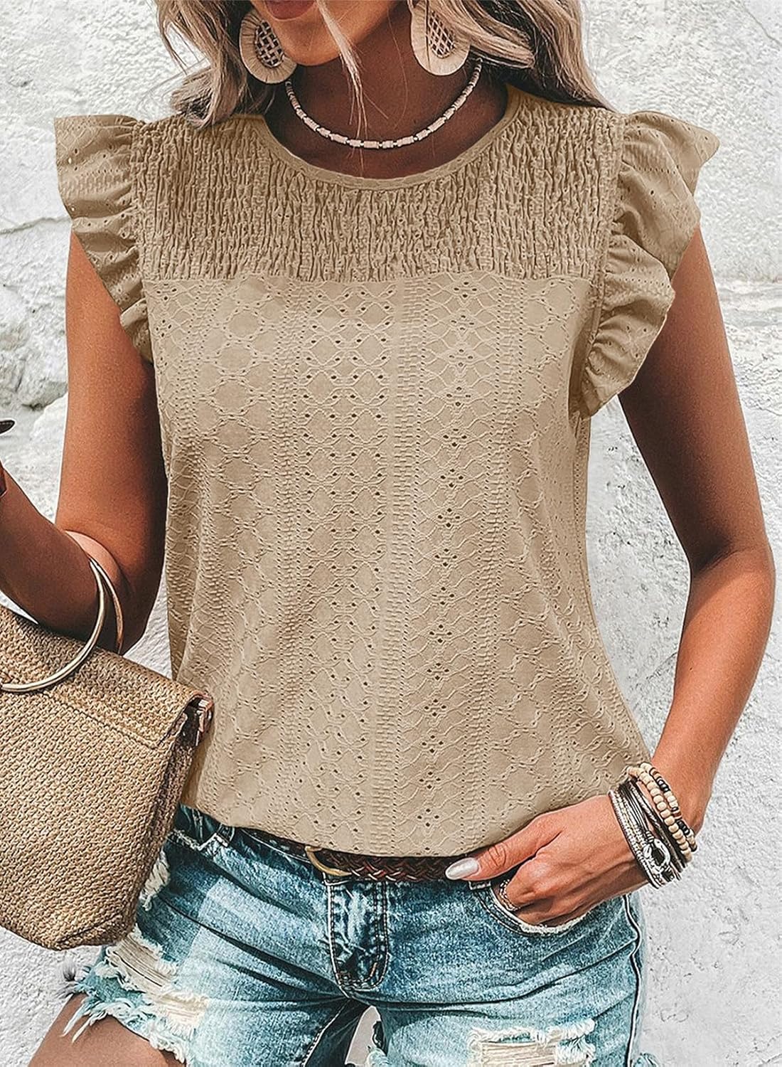 - Features: Crewneck t-shirts with ruffle sleeves, short sleeve tops, solid color, cute and casual shirts for women, trendy and fashion summer tops for women, ladies tops and blouses, add beauty to your wardrobe.
